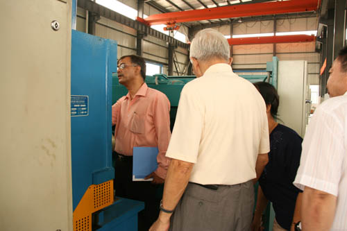 在公司領(lǐng)導(dǎo)的陪同下,PRAKASH先生參觀了公司的成品車間和生產(chǎn)車間,對我公司的生產(chǎn)及研發(fā)能力表示出極大的贊賞。我公司智能化的辦公和流水線系統(tǒng)吸引了PRAKASH先生一行。在操作人員的協(xié)作下,有著二十多年從業(yè)經(jīng)驗的PRAKASH先生對我公司的QC11Y大型機床進行了細致入微的考察,而我公司的機床也以其過硬的品質(zhì)和精密的設(shè)計贏得了PRAKASH先生的好評。