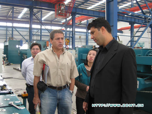 稍事休息,Atila Deniz先生和Mr.Tunc便帶著迫切的心情參觀了中德的各個車間。從裝備車間到大件車間,至電焊車間再到金工車間。客人對中德產(chǎn)品表現(xiàn)出濃厚的興趣,提出的問題也是相當(dāng)專業(yè)、細(xì)致。比如,機(jī)床使用材料的鋼號,數(shù)控系統(tǒng)的工作效率等等,無不體現(xiàn)出一個機(jī)床消費(fèi)成熟國的高標(biāo)準(zhǔn)。