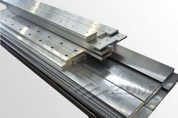 該刀片適用于液壓剪板機,液壓剪板機的刀片一般有9CrSI、6CrW2Si、Cr12MoV等幾種材質(zhì)。