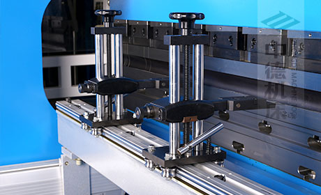 ●可調(diào)式檔指,手搖升降,可適應(yīng)不同模具;橫梁雙線軌設(shè)計,零游隙。