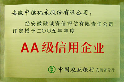 日前,經(jīng)安徽融誠(chéng)資信評(píng)估有限責(zé)任公司評(píng)定,安徽中德機(jī)床股份有限公司再次被中國(guó)農(nóng)業(yè)銀行安徽省分行授予二00五年年級(jí)AA級(jí)信用企業(yè)。